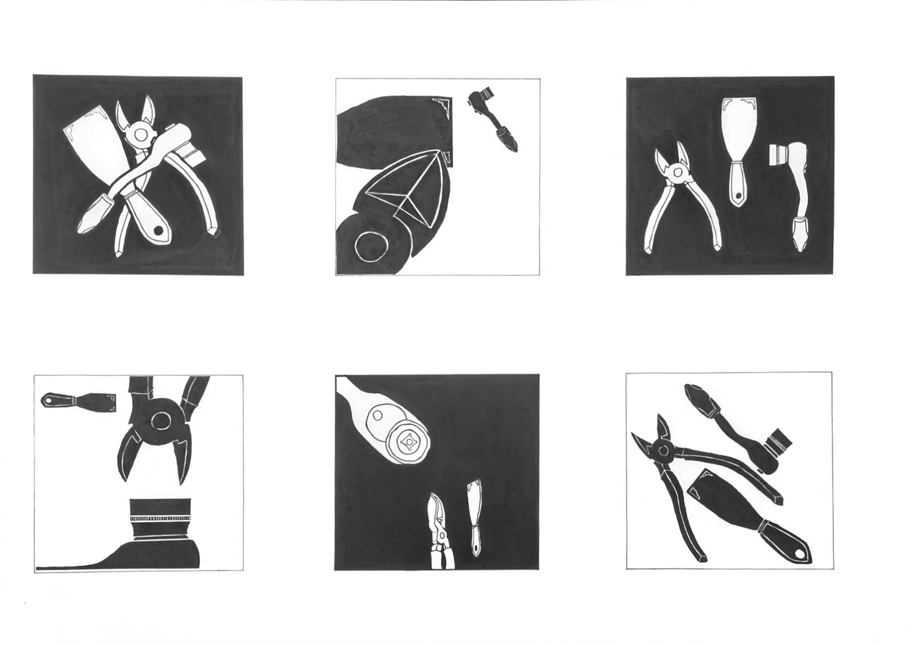 - 2 planches de dessins d’observation (détails et ombres propres) des 3 outils.