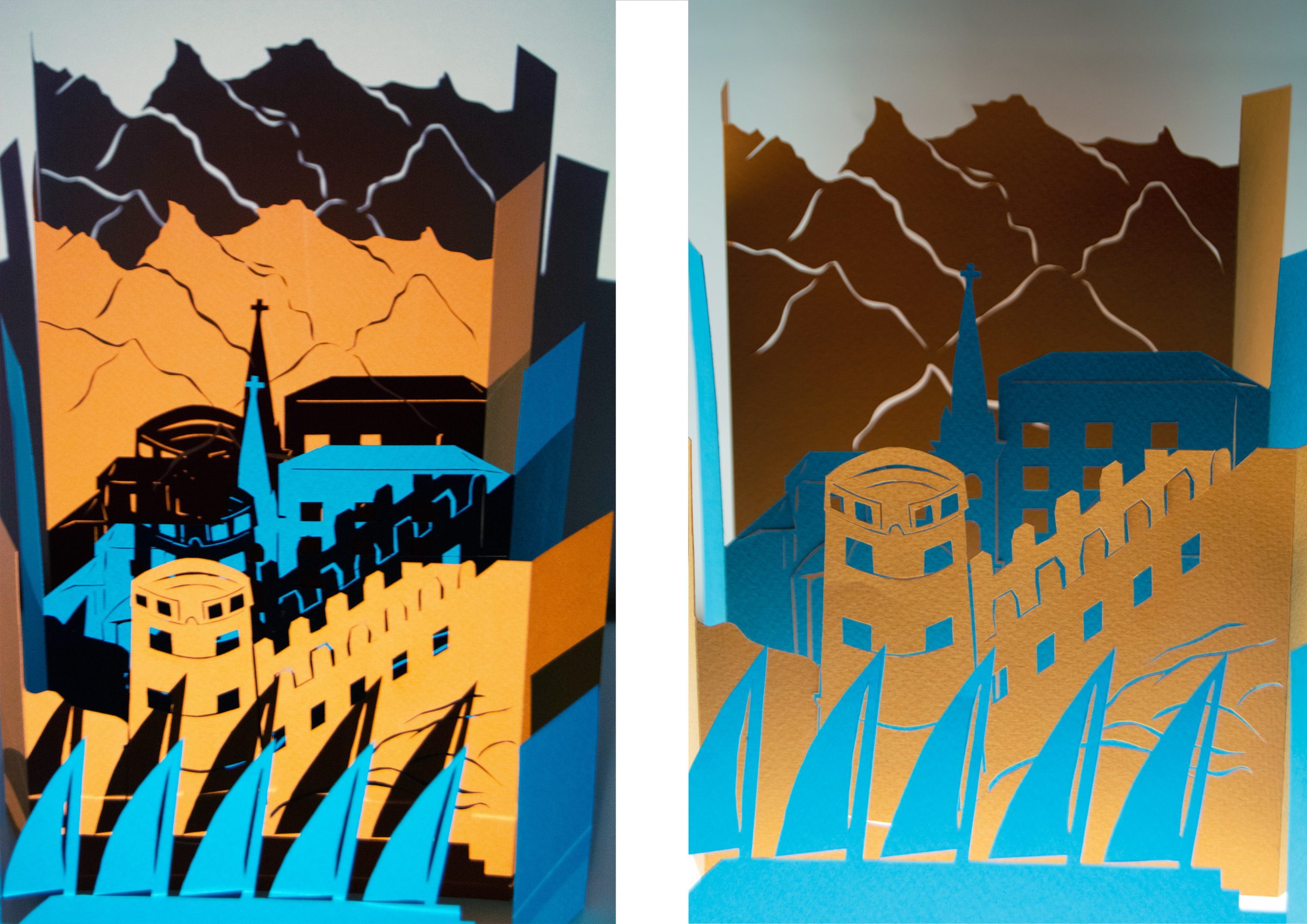 Le but de l’exercice est la réalisation de deux dépliants présentant chacun une ville de son choix, en découpe de silhouettes urbaines.